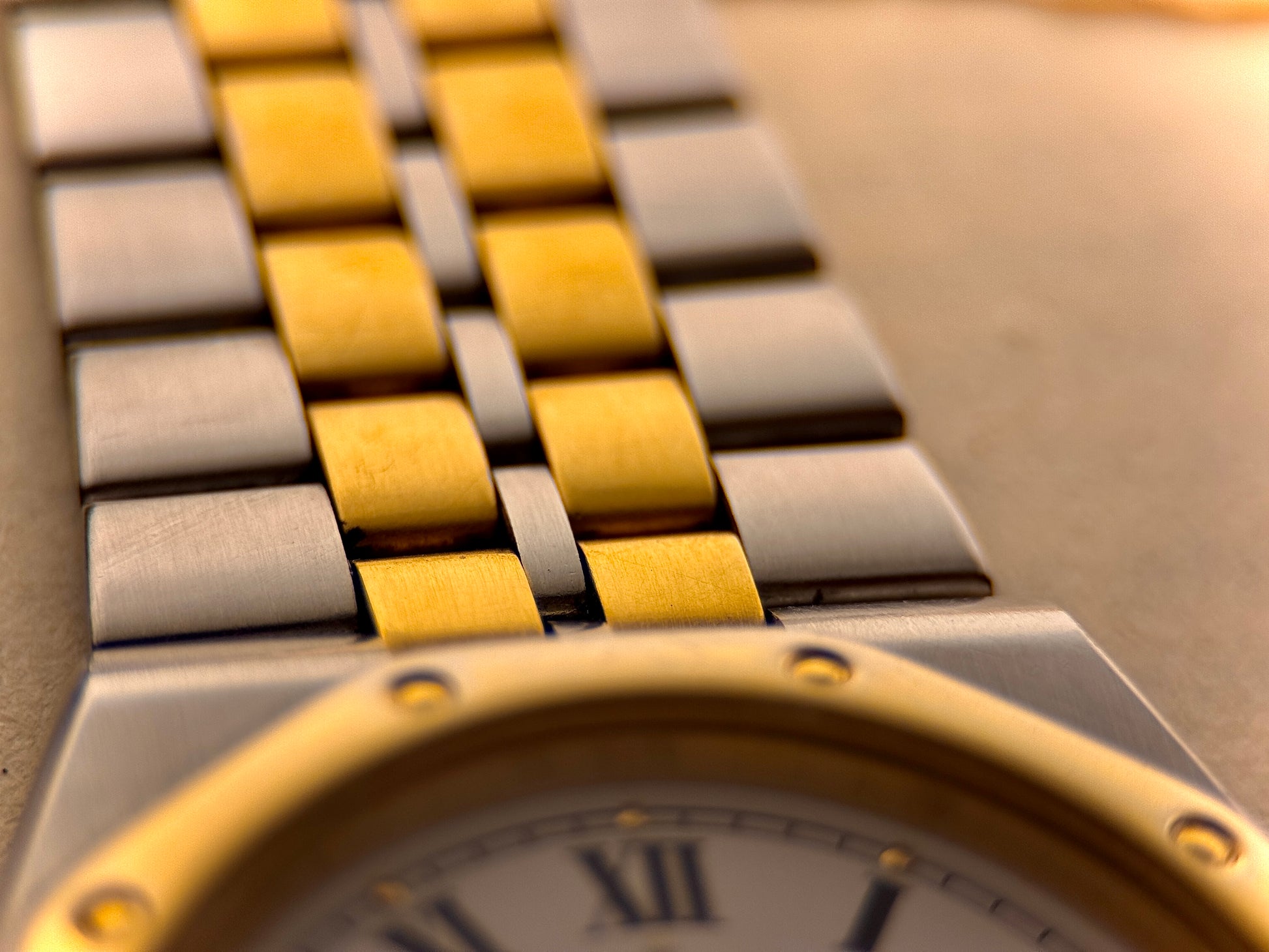 - Case Material: Stainless steel with gold-tone octagonal bezel