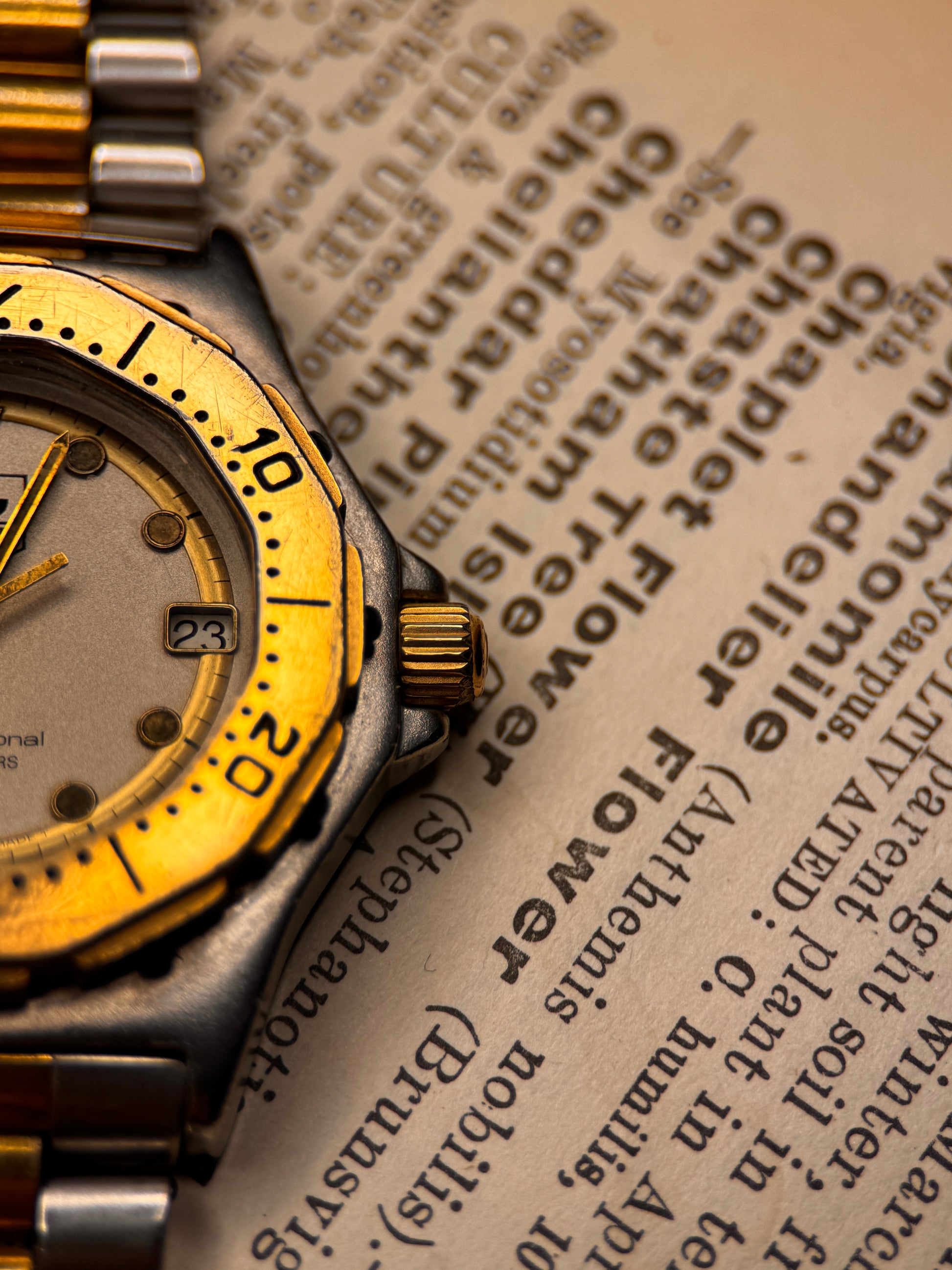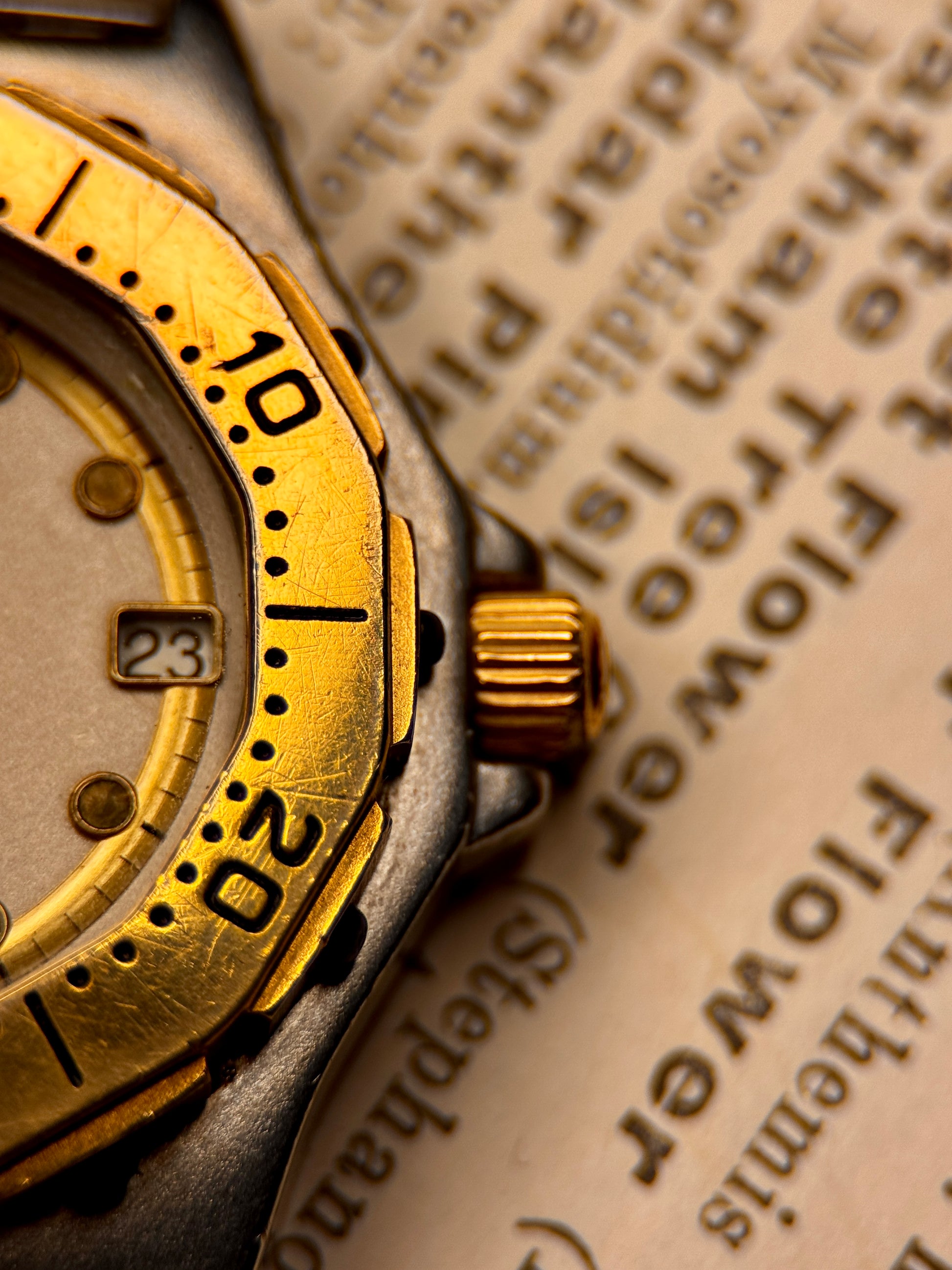 A standout from TAG Heuer’s golden era, the TAG Heuer 3000 Series 934.213 brings bold, two-tone charm and reliable Swiss performance. Discontinued in the early 1990s, this reference has become a collector favourite — loved for its rugged build, retro design, and increasingly rare presence on the market.
