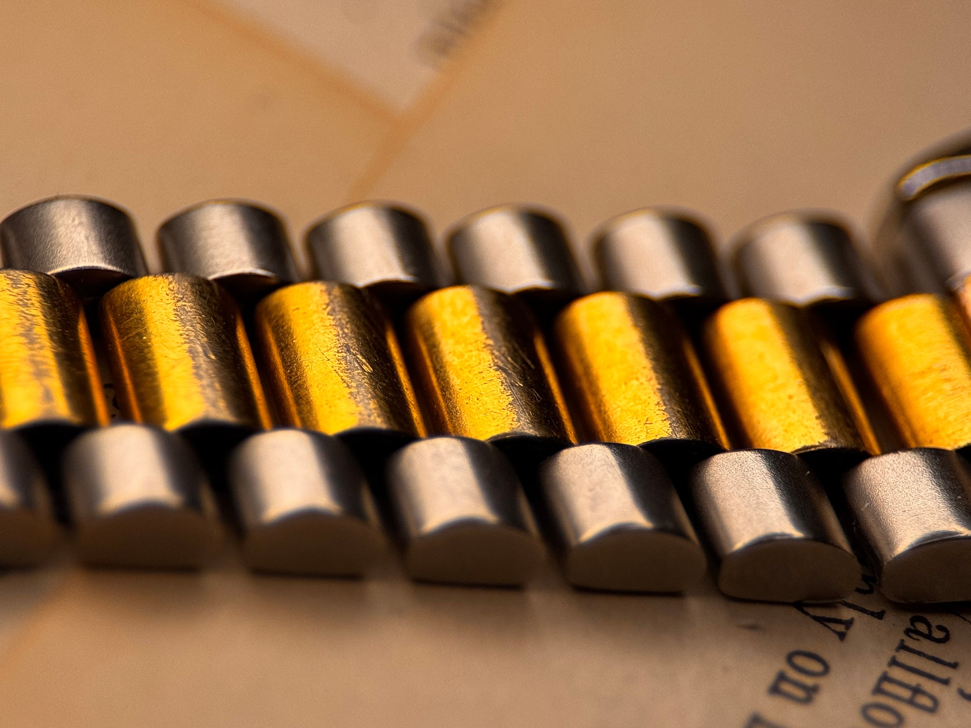 - Bezel: Gold-tone bezel with visible wear (adds to vintage character)